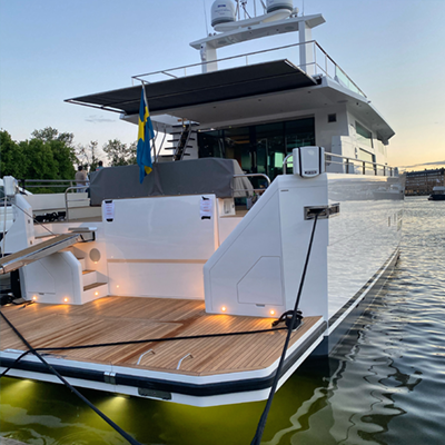 Entertainment systems with audio, video and networking in larger motor and sailing yachts.
